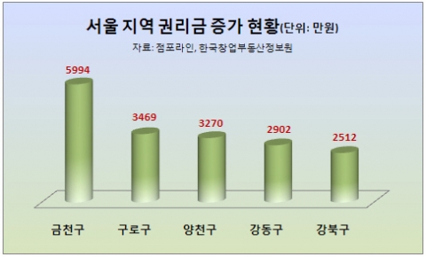 분석 내용에 따르면 서울 지역에서 평균 권리금이 가장 많이 오른 지역은 금천구인 것으로 파악됐다.