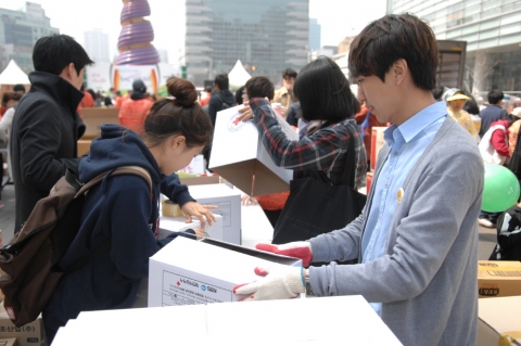 한편, 이 날 행사는 텔런트 김나운씨와 신현준씨가 참석하여 봉사자들을 격려하고, 함께 희망사자를 만들었다.