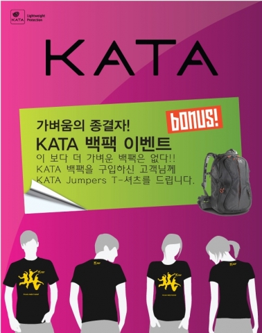 대상품목은 KATA의 인기품목 D-Light Collection:Bumblebee-220 DL, Owl-272 DL 2종, PRO-Light Collection:Bumblebee-220 PL, Beetle-282 PL, Bug-203 PL, Bug-205 PL, Source-261 PL 5종, Ultra-Light Collection:Bumblebee-222 UL, Bug-255 UL 2종, DPS : 3N1-22 Sling Backpack, 3N1-33 Sling Backpack 2종등 총 11종이다.