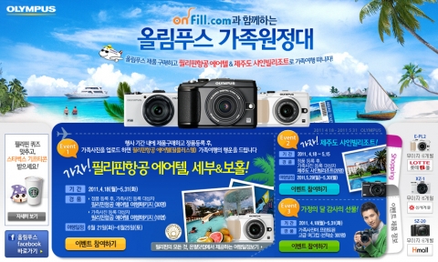 - PEN 시리즈 및 2011 콤팩트 카메라 신제품 구입/정품 등록 후 가족 사진을 등록하는 고객 대상으로 필리핀, 제주도 가족 출사 여행은 물론 푸짐한 경품 증정