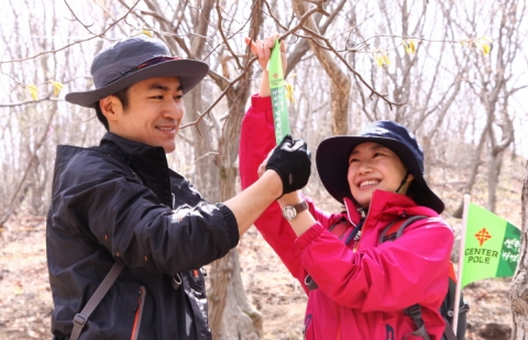 세정은 ‘센터폴은 자연과 함께합니다’라는 문구가 적힌 푸른 리본을 제작해 등반 이정표로 산행 곳곳에 리본을 나뭇가지에 매달고 초보 등반객들에게 적합한 산행길을 소개했다.