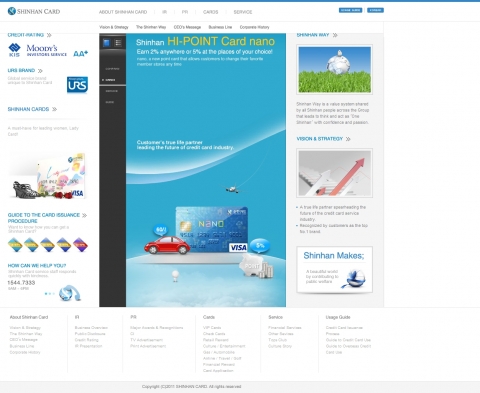 한편 영문홈페이지에는 회사소개, 비전, 주요 수상내역 등을 통하여 신한카드의 잠재적인 글로벌 비즈니스 파트너에게 신한카드의 브랜드를 널리 알리는 역할을 하게 될 것으로 예상된다.