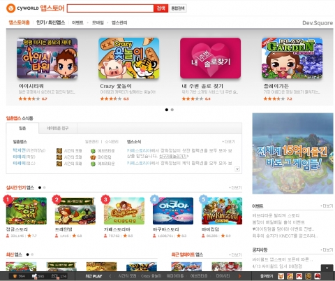 한편, 싸이월드 앱스토어는 이번 브랜드 변경과 함께 사용자 접근성을 확대했다. 인기 앱스와 최신 앱스를 한눈에 볼 수 있도록 카테고리를 통합하고, 각 앱 별 이벤트를 한번에 볼 수 있도록 이벤트 페이지를 신설했다.