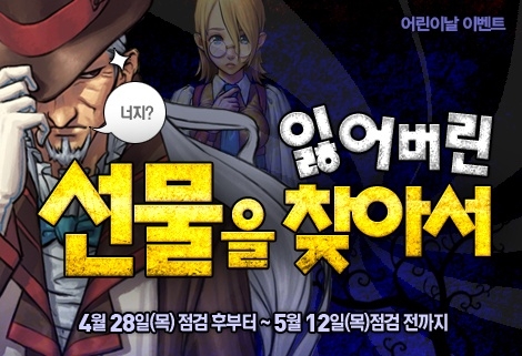던전앤파이터에서는 어린이날을 맞이해 오는 12일까지 ‘잃어버린 선물을 찾아서’ 이벤트를 실시한다. 이벤트기간 동안 던전에서 등장하는 ‘삐에로를 혼내주는 임무’를 완수하면 ‘대디 베어 인형’을 받을 수 있으며, 이를 게임 내 NPC(Non Playable Character) ‘로저 레빈’에게 전달하면 선물상자를 얻을 수 있다. 해당 아이템은 ‘로저 레빈 상점’에서 화폐처럼 사용할 수 있고, 이를 이용해 다양한 아이템을 구매할 수 있다. 이 밖에도 특정 시간대에 플레이 시 경험치를 2배 추가 지급한다.