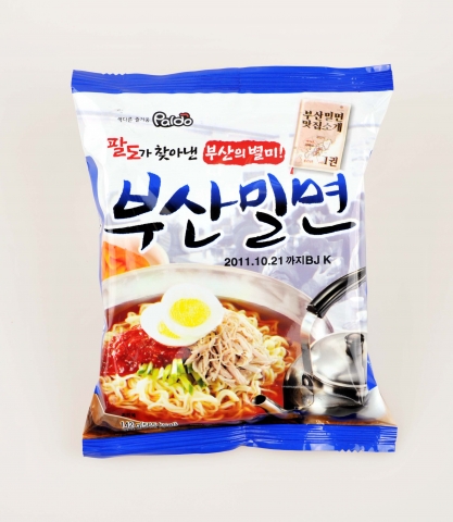 ‘부산밀면’은 51그람짜리 액상스프를 통해 진한 육수의 감칠맛과 매콤새콤한 국물맛을 재현해 여름시장을 노리고 있다. 액상스프는 냉수에 풀어 냉동실에서 1시간 정도 살짝 얼려 살얼음이 끼게 만들어 먹으면 더욱 좋다는 것이 회사측의 설명이다.