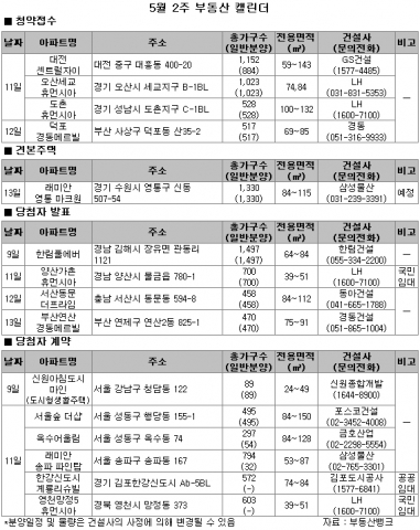 5월 2주 분양…전국 4개 사업장에서 3220가구 공급