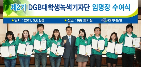 지역 대학생들로 이루어진 DGB 대학생 녹색기자단은 지난해 국내 금융권 최초로 출범했으며, 대구은행이 추진하는 다양한 친환경경영활동을 지역사회에 알리게 된다.