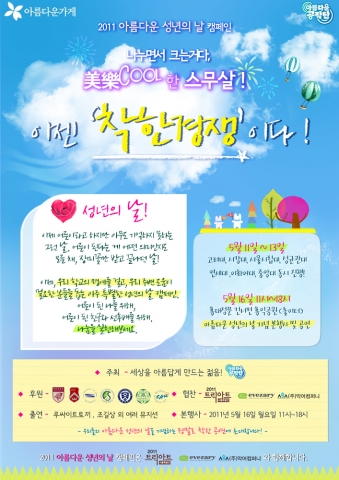 한편 성년의 날 당일인 16일에는 서울 마포구 홍익대학교 앞 홍익공원(놀이터)에서 누구나 참여할 수 있는 나눔 공연도 펼쳐진다. 성년의 날을 맞은 젊은이들에게 축하를 보내고, 보다 많은 시민들이 이 캠페인에 동참하도록 마련된 자리다. 이날 공연에는 루싸이트토끼, 조길상, 네이쳐 등 유명 인디밴드는 물론 대학생 오케스트라에서 대학생 기타리스트까지 다양한 출연진이 모두 재능기부로 참가한다.