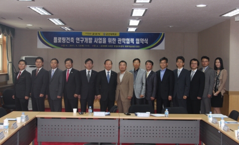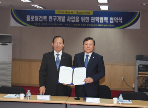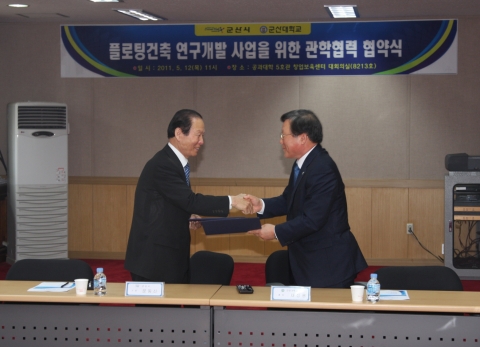 양 기관이 협력하여 수해양 문화공간을 위한 정주형 플로팅건축 설계기술 개발을 효율적으로 수행하기 위한 것으로, 협약식에는 채정룡 군산대 총장 및 주요 보직자, 참여교수, 문동신 군산시장 및 건설교통국장, 건축과장 등 군산 시청 관련자들이 참석하였다.