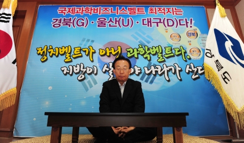 최근 과학벨트와 관련해 불합리한 평가기준, 삼각벨트 분산설, 평가순위 언론유출 등 일련의 불공정한 행태에 대해 650만 시도민과 함께 분노하며, 헌법에 명시된 균형발전의 높고 높은 가치를 무시하는 중앙정부의 각성을 촉구하고, ‘과학벨트는 우리세대와 다음세대까지 세계전선에서 경쟁하며 살아갈 수 있는 터전을 만들기 위해, 지방도 살아야 하는 절박한 생존권 차원에서 반드시 유치되어야 한다는 간절한 염원을 정부와 시도민에게 다시한번 호소한다’고 밝혔다.