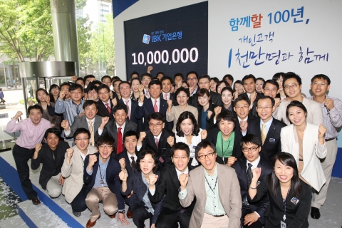 기업은행은 13일 서울 을지로 본점 로비에서 조준희 은행장과 본부직원 200여명이 참석한 가운데 개인고객 1천만 명 달성을 기념하는 축하행사를 열었다.