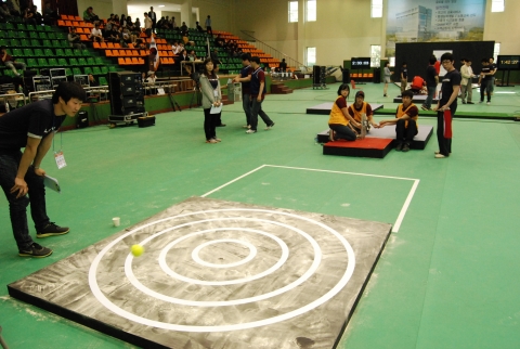 오후 1시~5시 40분까지 진행된 이번 대회는 모터와 로봇팔을 이용한‘정밀제어 3종 경기’로 ▲공 멀리 던지기, ▲지정된 위치의 과녁에 던져 넣기, ▲Putting 하여 hole에 넣기 등 세 가지 종목으로서, 각 팀들은 모터의 회전에 의한 회전 가속력과 원심력을 이용해 세 가지 경기를 치렀다.