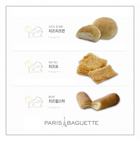 식품전문기업 SPC그룹(허영인 회장)의 계열사인 (주)파리크라상의 대표브랜드 파리바게뜨는 치즈로 만든 ‘치즈치즈번’, ‘치즈포’, ‘치즈찰스틱’ 등 신제품 3종을 출시했다. 치즈 고유의 쫄깃하면서도 고소한 맛은 십분 살리면서 각양각색의 개성을 지녀 치즈 매니아라면 꼭 맛볼 만 하다.