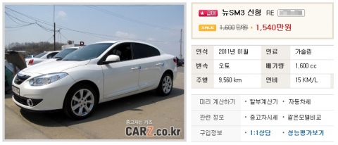 올해 출시된 따끈따끈한 2011년식 차량도 마찬가지다. 출고된 지 10일도 채 되지 않은 일명 임시번호판급 ‘뉴SM5’는 신차보다 100만원 가량 저렴한 2,450만원에, 뉴SM3 신형은 1,540만원에 올라와 있다. SM3는 2009년식과 비교했을 때 100만원 정도밖에 차이 나지 않는 수준이다. 올 3월 출시된 쌍용 ‘코란도C’의 판매자도 신차대비 135만원 저렴하게 내놓았다.
