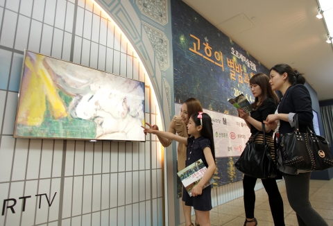 이와 함께 46인치 대형 모니터 4대로 구성된 LFD 비디오월을 통해 고흐의 ‘별이 빛나는 밤’, 밀레의 ‘봄’ 등의 작품을 화려한 영상으로 소개해 관람객들에게 기술과 예술이 만나 완성된 색다른 감동을 전해 준다.