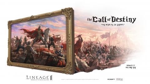 ‘리니지2’의 메인 테마인 ‘운명의 부름(The Call of Destiny)’을 슬로건으로 제작된 이번 포스터는 온라인게임 역사상 가장 기억에 남는 사건으로 손꼽히는 ‘바츠 해방 전쟁’을 소재로 하고 있다.