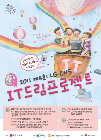 ‘LG CNS IT드림프로젝트’는 IT전문가를 꿈꾸고 있으나 가정형편이 어려운 청소년들을 돕기 위해 LG CNS가 2008년부터 매년 개최하는 행사다. 청예단 산하 서울시립청소년미디어센터가 주관하고 사회복지공동모금회가 후원한다.