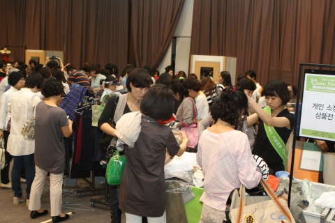 현대백화점 무역센터점은 21일 자선 장터인 ‘그린마켓’을 열였다. 백화점 고객들이 기증한 식품, 의류, 잡화 등 다양한 상품들을 판매했으며 수익금은 어린이 가장돕기에 쓰인다.