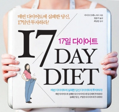 ‘17일 다이어트’는 현장에서 수많은 비만 환자들을 치료해 온 저자 마이크 모레노 의학박사가 직접 개발한 효과적인 체중 감량 프로그램을 소개한 책으로 식단조절만으로 17일만에 5kg의 감량을 장담한다.