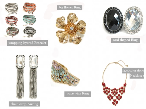 진주, 다이아, 천연보석과 같은 소재가 아닌 가죽, 스카프의 실크원단 등을 이용해 금속과 믹스시킴으로 미니멀하고 심플한 스타일부터 과감하고 볼드한 스타일까지 누구에게나 언제나 어디서든 개성을 표현할 수 있다.