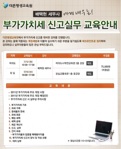 2011년 1기 부가가치세 신고, 더존평생교육원에서 꼼꼼하게 준비