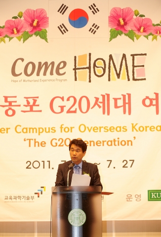 이들 해외동포 학생들은 13일 건국대 새천년관에서 이주호 교육과학기술부장관과 김진규 총장 등이 참석한 가운데 해외동포 자녀 G-20세대 여름캠퍼스 입교식을 갖고 환영 만찬 후 오리엔테이션을 시작으로 한국어 강의를 통해 일상생활에 필요한 실용회화 중심의 한국어를 습득하게 되며 한국사 수업과 경주 수학여행, 서울시티투어, 도자기 만들기, 국회의사당 방문 등의 한국문화 체험 활동을 통해 한국인으로서의 정체성을 확립하고 민족 자긍심을 배양하게 된다.
