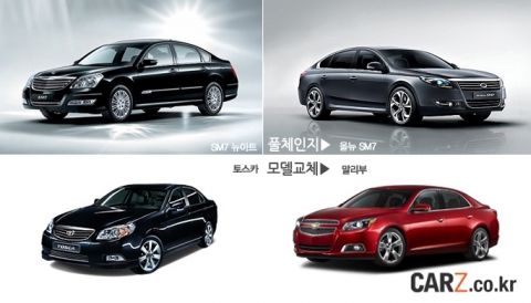 기존 이미지에서 탈피하며 다른 차 같은 매력으로 인기몰이를 중인 풀체인지 대표모델은 ‘그랜저HG’와 ‘아반떼MD’ 등이다. 이들처럼 파격변신을 노리는 주인공은 르노삼성의 대형세단 ‘올뉴 SM7’. 이름에 걸 맞게 7년 만에 출시되는 풀체인지 모델로 주요 부품과 디자인이 모두 바뀌는 것으로 알려졌다. 2011 모터쇼를 비롯해 언론에 사전공개 되면서 구형 SM7뉴아트의 중고차의 하락세도 포착되고 있다.