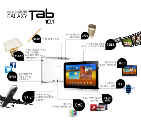 특히, 삼성전자는 갤럭시탭 10.1에 지상파 DMB 등 멀티미디어 기능을 강화하고, 신문·책·교육 등 국내 특화형 컨텐츠를 탑재한 한국형 태블릿으로 재탄생시켰다.