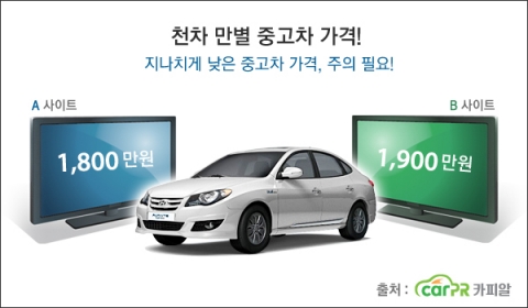 영업용 트럭 중고차 구매를 위해 중고차 쇼핑몰을 살펴보던 K씨(33. 자영업)는 한 사이트에서 본 중고차가 다른 사이트에서 더 저렴한 가격에 판매되고 있는 것을 발견했다. 차량번호에 차량사진, 옵션까지 모두 같은 동일 매물이었지만 가격은 50만원이나 차이가 나서 혼란스러울 수밖에 없었다.