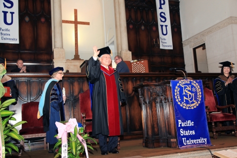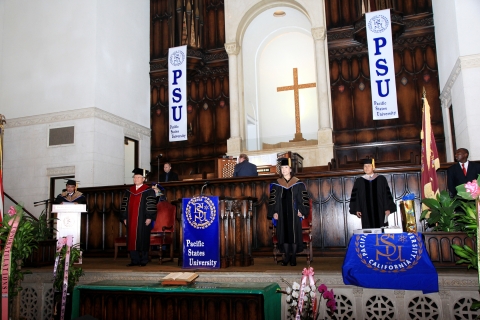 학교법인 건국대와 PSU 이사회는 지난 22일(현지시각) 미국 LA PSU대학 윌셔캠퍼스 크리스찬교회에서 김진규 총장 취임식을 열고, 향후 두 학교의 발전구상을 담은 비전을 선포했다. 이날 취임식에는 건국대 김경희 이사장과 PSU 이사회, 학생과 학교 관계자, 동문 등 100여 명이 참석했다.
