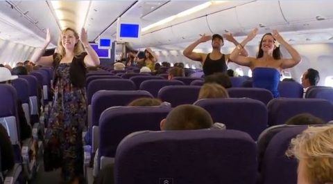 하와이안항공이 최근 유투브(youtube.com)에 공개한 동영상에는 탑승 중이던 훌라댄서들이 차례로 자리에서 일어나 하와이안 음악 ‘케 알로하(Ke Aloha)’ 의 부드럽고 감미로운 리듬에 맞춰 아름다운 훌라댄스를 선보이는 영상이 담겨 있는데, 하와이안항공의 샌프란시스코발 호놀룰루행 항공기에 탑승한 20명의’ 훌라학교(Na Lei Hulu I Ka Wekiu:‘나 레이 훌라 아이 카 웨키우) 재학생들이 태평양 상공에서 훌라댄스 플래시몹을 선보인 것이다.