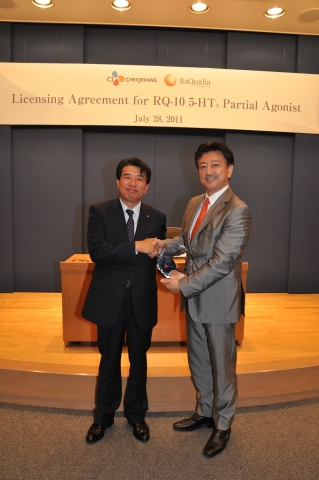 CJ제일제당 제약사업부문 강석희 대표와 라퀄리아사 나가히사 사장이 참석한 가운데 진행된 이날조인식에서 양사는, RQ-10을 기존 위장관 운동기능개선제 대비 우수한 약효, 안전성 등의 특장점을 가진 세계적인 신약으로 개발하고 중국, 인도, 동남아시아로의 진출을 위해 향후 긴밀히 협력하기로 하였다.