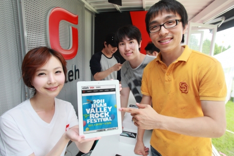 )--KT는 7월29일부터 31일까지 경기도 이천에서 진행되는 지산록페스티벌 현장에 스마트 네트워크 환경을 구축하였으며 특히 찾아가는 서비스로 체험형 매장을 운영하여 방문객들은 최신 스마트 단말기 체험은 물론 휴대폰 충전과 클리닝 등 다양한 서비스를 이용할 수 있다.