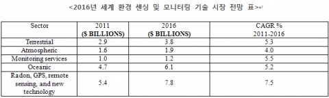 - 세계 환경 센싱 및 모니터링 기술 시장 규모, 2016년 153억 달러 전망