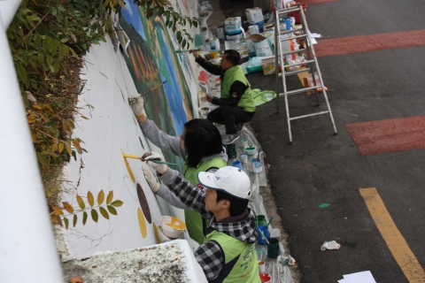 한국보건복지인력개발원(원장 이상용) 사회복무벽화지원단은 보건복지현장에서 복무중인 사회복무요원 중 디자인 전공자 또는 희망자를 대상으로 벽화지원단을 구성하여 활동 중에 있으며 이번 동주여중 앞 담장벽화작업을 통해 지역 주민 및 학생들에게 작은 행복과 즐거움을 선사할 것으로 기대된다.