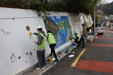 이번까지 총 9차례의 지원사업을 통해 부산지역 사회복지시설 및 저소득층 주거지역 7곳에 벽화를 선물해왔으며, 실력도 점점 늘려왔다. 사회복무벽화지원단은 2009년 총 8명의 사회복무요원으로 구성되어 출범되었으며, 현재는 20여명의 사회복무요원과 일반인 자원봉사자들이 함께 하고 있다. 대학에서 디자인, 미술교육, 조경학 등을 전공한 사회복무요원들은 벽화지원단을 함께하면서 사회복무요원으로서 또 다른 긍지와 재미를 알게 되었다고 한다.