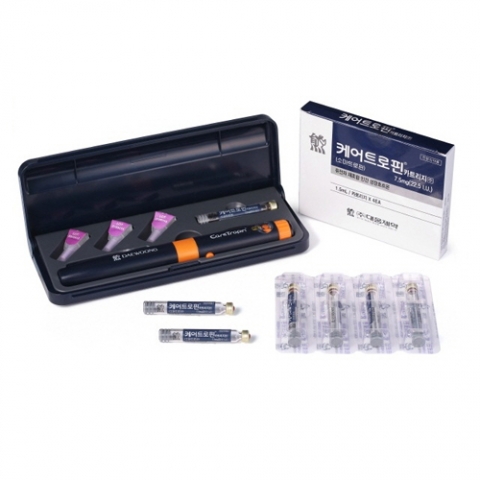 ‘청담동 주사’ 케어트로핀은 국내 최초 자체 개발한 ‘펜 주사기’로 간편하게 집에서 자가주사를 할 수 있어 편리하다. 리셋 버튼이 장착돼 있어 용량조절이 쉽고, 주사법 역시 간단해 바쁜 직장인은 물론 40~50대 장년층이 사용하기에 적절하다.