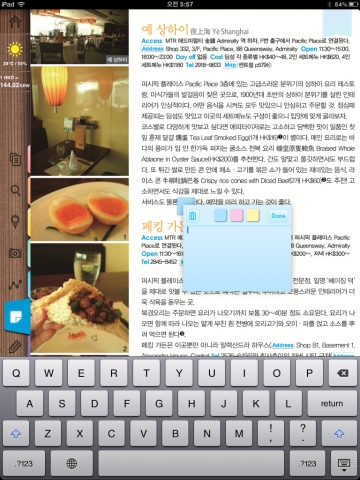 여행 애플리케이션은 현지의 날씨 정보, 검색기능, 사진 찍기, SNS 공유, 포스트잇 메모 등을 제공하며, 구글맵이 지원돼 주소 확인시 지도를 함께 보여줘 길 찾기가 한결 더 쉬워진다.