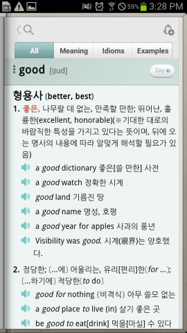 구글 플레이스토어 디오딕4 영한,한영사전: http://www.diotek.com/public/google_dict4_eng.asp