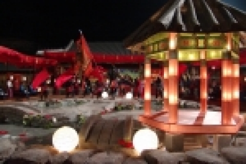 <왕의 남자> 제작진은 점차 신랄하고 화려해지는 광대들의 놀이판을 시각적으로 표현하기 위해 각 연회마다 컨셉을 차별화해 매번 다른 세트를 제작했다. 특히 이번 촬영은 야간에 이뤄지는 궁중연회의 스펙터클을 부각하기 위해 연회장 안에 연못과 정자를 특별 제작해 규모 면에서도 드라마틱한 구성을 극대화했다.