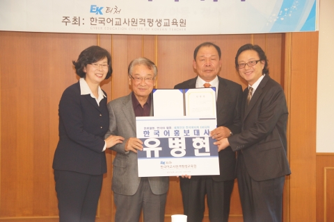 서울--(뉴스와이어)--EK티쳐 한국어교사원격평생교육원(원장 이순재, 대표 유길상)은 오늘(23일) 용산구 본원에서 세양정공 유병현 대표에게 한국어홍보대사 임명장을 수여했다고 밝혔다.