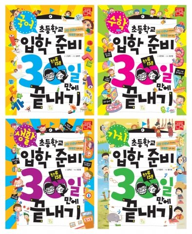 ‘초등학교 입학 준비 30일 만에 끝내기’ 시리즈는 현장 경험이 풍부한 전·현직 교장 선생님이 집필하고 아동 심리전문가가 감수한 초등학교 본격 입학 준비 프로그램이다. 국어, 수학, 생활, 가치 총 4가지로 이루어진 이 시리즈는 하루 15분 한 달 커리큘럼으로 구성되어 있다.