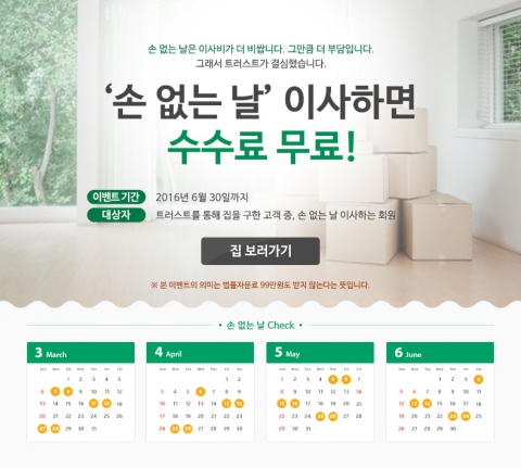 트러스트 부동산 통해 계약한 소비자 중 손 없는 날 이사하면 수수료 무료 혜택 제공