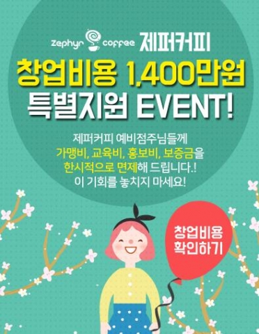 이번 설명회는 2016년 제퍼커피가 처음 진행하는 창업설명회로 중국 진출 기념으로 국내 소자본 카페창업을 원하는 창업주 20명을 모집하여 오픈 비용이 4900만원(8평 기준)이라는 카페창업 비용에서 한시적으로 3700만원의 자금으로 커피전문점을 창업할 수 있게 지원한다.