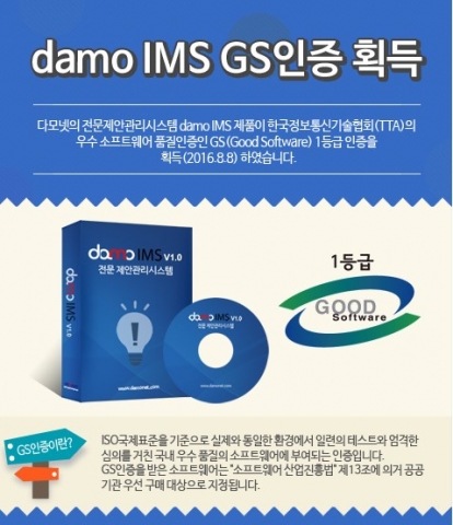 GS인증은 국산 소프트웨어 중 실제 환경 테스트를 거쳐 기술성과 품질을 증명하는 국가 인증제도로 다모넷은 3개월간 한국정보통신기술협회의 엄격한 심사를 통과, 제품에 대한 안정성과 품질을 인정받았다.