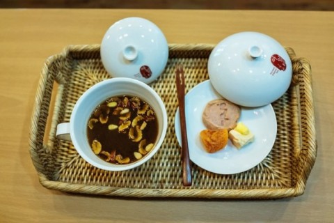 카페 메뉴의 종류로는 전통 한방차와 한방차라떼, 한방차에이드, 꽃차, 과일 음료, 커피, 디저트 등으로 나뉘고 있다. 전통 한방차에는 배도라지차, 구기자차, 계피생강차, 십전대보라떼, 대추라떼 등이 있으며, 꽃차에는 생강나무꽃차, 매화차, 목련꽃차 등이 있다.